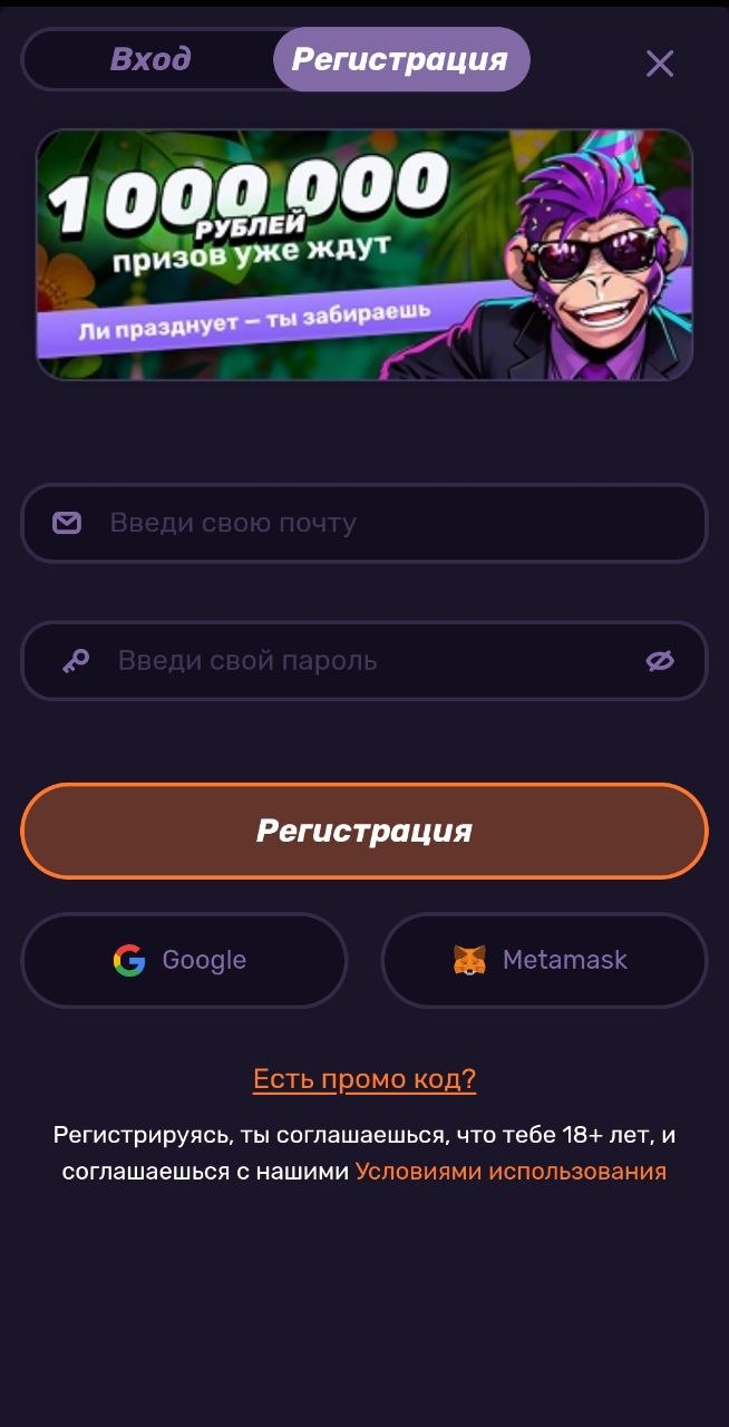 • Быстрая регистрация, мгновенная авторизация новичок.